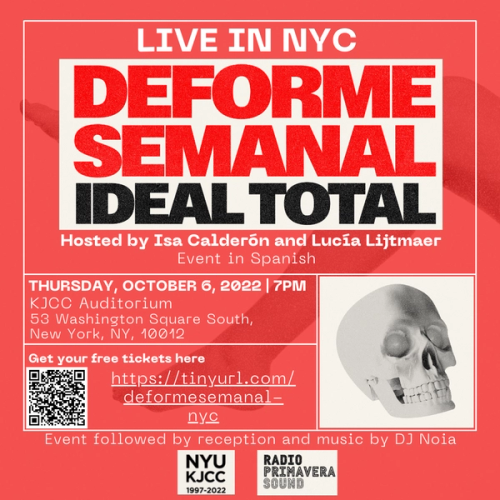 Deforme Semanal Ideal Total, hosted by Isa Calderón and Lucía Lijtmaer, was recorded live in New Yor...